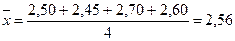 Пример: определить среднюю цену на сахар за год, если средняя цена в первом квартале составила 2,50; во втором – 2,45; в третьем – 2,70; в четвертом – 2,60. Так как частоты равны единице, то используется средняя арифметическая простая: