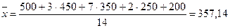 Пример: определить среднюю заработную плату работников магазина, если 1 человек получает 500 грн.; 3 – 450; 7 – 350; 2 – 250; 1 – 200. Так как варианты имеют различную частоту, то необходимо использование средней арифметической взвешенной: