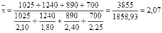 - если варианты имеют различную частоту, используется средняя гармоническая взвешенная: