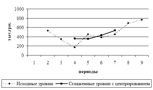 Для четного числа уровней каждое значение скользящей средней приходится на промежуток между двумя сглаженными кварталами. Для определения сглаженных уровней с производится центрирование (