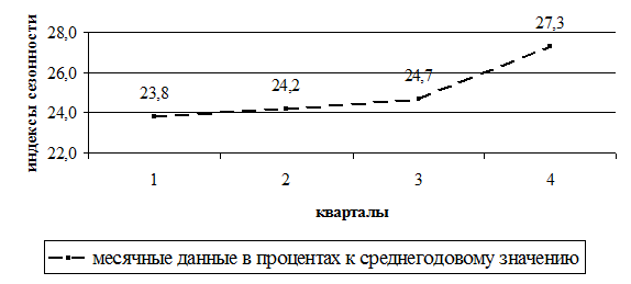 Преобразование рядов динамики используется так же для того, чтобы более отчетливо выявить сезонные колебания динамики. Под сезонными колебаниями понимаются более или менее устойчивые внутригодовые колебания уровней развития социально-экономических явлений.