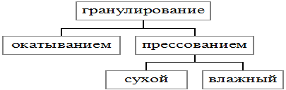 Сущность заключается в том, что частицы пылевидных, мучнистых и волокнистых материалов, смоченные жидкостью, при многократном окатывании сжимаются в шарики за счет поверхностного натяжения смачивающей жидкости (влажность перед гранулированием должна быть 30 – 35 %).