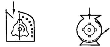 б) закрытого типа (их делят по расположению вала: с вертикальным или горизонтальным валом). Здесь есть решета и деки и материал циркулирует в камере.