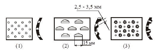 В дробилках применяют пробивные решета с круглыми отверстиями (1), чешуйчатые с прямоугольными или полуовальной формой отверстиями (2) и комбинированные (3).