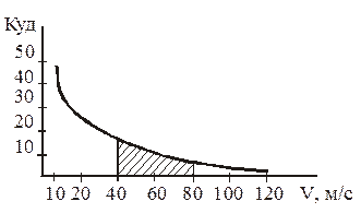 Рис. Потребное число ударов молотка для разрушения зерна в зависимости от скорости молотка.
