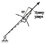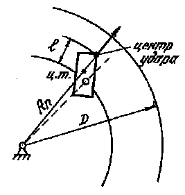 Центром качания относительно центра удара называют точку в которой скорость поступательного движения равна по величине скорости поворота (линейной) и обратна ей по направлению.