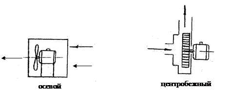 По конструкции и принципу действия вентиляторы делятся на осевые (рабочим органом является лопасть) и центробежные (рабочим органом является колесо).