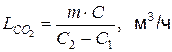- допустимое содержание СО2 или другого газа в помещении, г/м3;