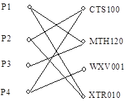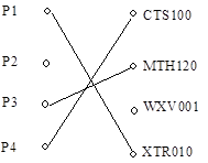 - номер дисциплины, значениями которых являются P1, P2, P3, P4 и CTS100, MTH120, WXV001, XTR010 соответственно, а значением ключа связи будет, например, пара <P1,XTR010>.
