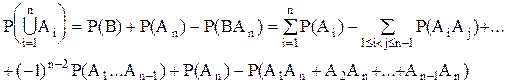 Доказательство: Методом математической индукции. При n=2 теорема доказана. Пусть она верна для (n-1) события; покажем, что при этом она верна для n событий. Обозначим В=