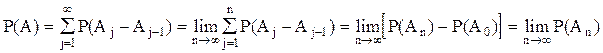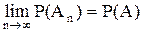 Функция множеств Р(А) - непрерывна. Если Аn есть монотонно возрастающая последовательность множеств: A1ÌA2ÌA3...ÌAnÌ... и