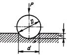 Рис. 4. Схема измерения твердости по Бринеллю: D - диаметр шарика; d - диаметр отпечатка; h - глубина отпечатка