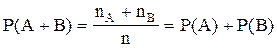 3. Если А и В несовместны и они имеют nA и nB благоприятствующих исходов соответственно, то