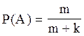 Решение: Общее число равновозможных исходов опыта n=m+k. Число исходов, благоприятствующих А, nA=m,