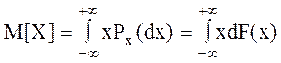Мы знаем, что случайная величина Х(w) индуцирует меру Рх на прямой, задаваемую равенством: Px=P{X<x}=F(x), поэтому М[X] мы можем определить также как
