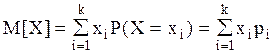 Из определения следует, что M[X] существует, если M½[X]½<¥. Практически редко встречаются случаи, когда математическое ожидание не существует. Если F(x) ─ ступенчатая функция (рассматривается дискретная случайная величина), то интеграл Стилтьеса в формуле (1) превращается в сумму
