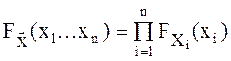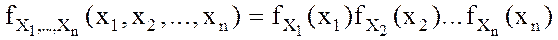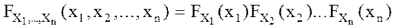 P{X1=x1,X2=x2,...,Xn=xn}=P{X1=x1}P{X2=x2}...P{Xn=xn}=