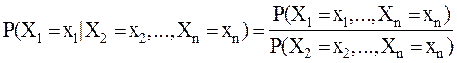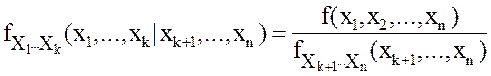 т.е. условной плотностью распределения любой подсистемы (X1,...,Xk), входящей в систему (X1,...,Xn) называется плотность распределения этой подсистемы, вычисленная при условии, что остальные случайные величины приняли определенные значения: Xk+1=xk+1; Xk+2=xk+2;...,Xn =xn.