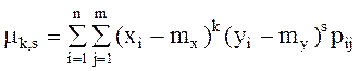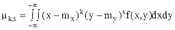 Центральным моментом порядка k+s системы двух случайных величин (X,Y) называется математическое ожидание произведения