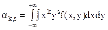 Начальным моментом порядка k+s системы двух случайных величин (X,Y) или двумерного случайного вектора называется математическое ожидание произведения Xk на Ys