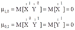 a1,0 = M[X1Y0] = M[X] = mx, a1,0 = mx