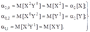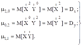 В качестве числовых характеристик системы случайного двумерного вектора (X,Y) обычно рассматриваются начальные и центральные моменты различных порядков.