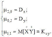 Первые два момента представляют дисперсию, а третий называется ковариацией (или корреляционным моментом) случайных величин (X,Y), обозначается Kxy: