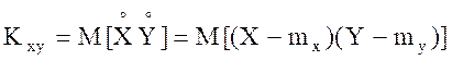 Kxy=a1,1-a1,0×a0,1 или Кxy=M[X×Y]-M[X]×M[Y] (13)