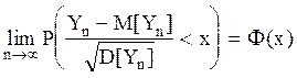 Теорема. Пусть X1,...,Xn,... последовательность независимых одинаково распределенных случайных величин с математическим ожиданием M[Xi] = m < ¥ и дисперсией D[Xi] = s2 < ¥. Пусть