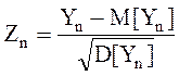 ~N(0,1) стандартная или стандартизированная нормальная случайная величина. Найдем математическое ожидание, дисперсию и подставим в Z n
