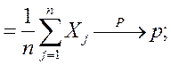 Математическое ожидание и дисперсия случайной величины Xj равны M[Xj]=p; D[Xj]=pq, где q=1-p. Условие теоремы Хинчина выполняется, следовательно
