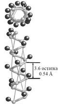 - содержит 3,6 аминокислотного остатка на виток с периодом повторяемости 5,4 нм *[0,54 Å (Å – ангстремы; 1 Å = 10 нм)];