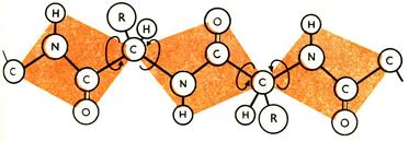 Рис 1.16 Полипетидная цепь состоит из ряда жёстких плоскостей, чередующихся с группировками CHR