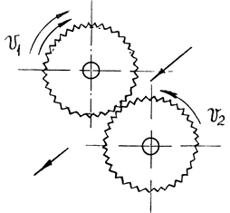 Для дробления зерновых кормов рабочие части вальцовых станков (рис. 1) выполняются в виде двух параллельных чугунных цилиндров (вальцов) с рифленой поверхностью. Оба вальца приводятся во вращение в разные стороны и с различной скоростью (