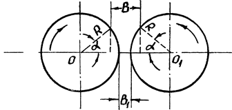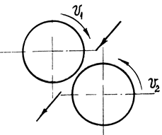 Следовательно, для обеспечения захватывания материала поверхностями вальцов необходимо, чтобы угол