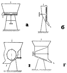 а – вертикально - дисковая корнерезка; б - горизонтально-дисковая корнерезка; в - барабанная коническая корнерезка; г - барабанная корнетёрка - дробилка
