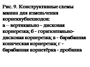 Конструктивные схемы наиболее распространенных машин для измельчения корнеклубнеплодов представлены на рис. 8 и 9.