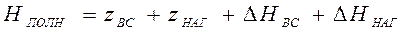 где zВС – геометрическая (геодезическая) высота всасывания, т.е. расстояние по вертикали от уровня воды в источнике до оси рабочего колеса насоса, м; zНАГ – геометрическая (геодезическая) высота нагнетания, т.е. расстояние по вертикали от оси рабочего колеса насоса до уровня воды в трубе или напорном резервуаре, м; ∆ HВС, ∆ HНАГ – потери напора соответственно во всасывающем и нагнетательном трубопроводах, м.