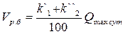 где k`1 – максимальная положительная разность между ординатами подачи и водопотребления, %; k``2 – максимальная отрицательная разность между ординатами прямой 2 и кривой 1, %.