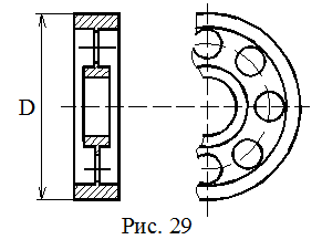 При конструировании маховика стремятся к получению необходимого момента инерции маховика Jм с наименьшим весом G и заданным диаметром D. Для этой цели маховик изготавливается в виде тяжелого обода, соединенного со втулкой тонким диском с отверстием или спицами (рис.8.11). Приближенно Jм можно определить по формуле: