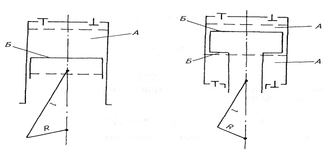 | Рис. 8.2.Тронковый поршень: А — рабочая плоскость; Б — рабочая поверхность | Рис. 8.3.Дифференциальный поршень жизнеобеспечения |
