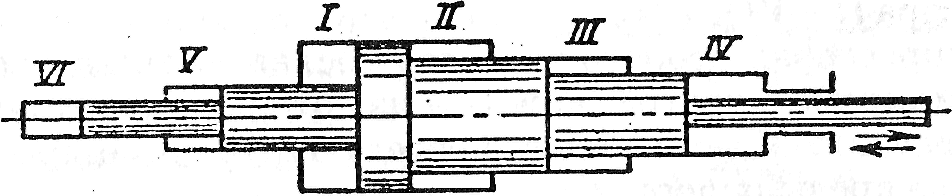 Используя принцип создания ступеней при помощи поршня переменного диаметра, можно создать компрессор с большим чис-лом ступеней. На рис. 8.7 приведена схема шестиступенчатого компрессора (I - VI).