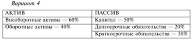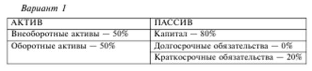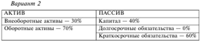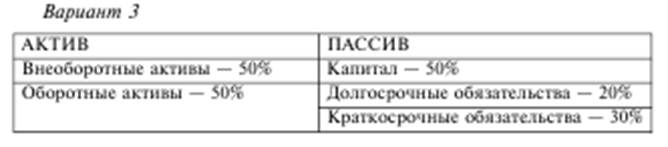 Данный вариант структуры баланса на первый взгляд говорит о недостаточности собственного капитала. Вместе с тем наличие долгосрочных обязательств позволяет полностью сформировать долгосрочные активы за счет долгосрочных источников средств.