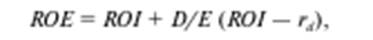Смысл данного соотношения состоит, в частности, в том, что, пока величина ROI выше ставки привлечения заемных средств, ROE будет расти тем быстрее, чем выше соотношение заемных и собственных средств (чем выше финансовый рычаг). Однако по мере роста доли заемных средств величина процентных выплат приводит к все большему сокращению прибыли. В результате рентабельность инвестиций падает, становясь меньше стоимости привлечения заемных средств. Это в свою очередь приводит к падению рентабельности собственного капитала (проблема риска компании, решившей воспользоваться эффектом финансового рычага для увеличения ROE).