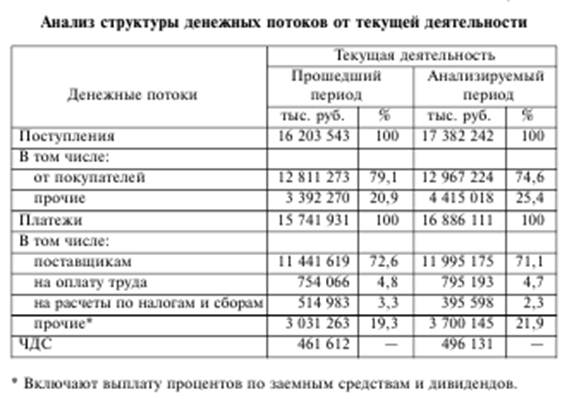Анализ данных табл. 2. позволяет оценить объем и структуру денежных потоков от текущей деятельности. Прежде всего, следует отметить, что в течение прошедших периодов, а также согласно имеющемуся финансовому плану компания стабильно обеспечивает превышение поступлений над платежами в результате текущей деятельности. Это позволяет говорить о достаточности денежных средств для осуществления текущих расходов, выплаты процентов и дивидендов.