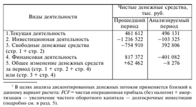 О способности организации к осуществлению инвестиций за счет денежного потока от текущей деятельности, т.е. о способности к самофинансированию, а также о возможной потребности в иных источниках финансирования свидетельствует показатель, получивший название свободного денежного потока FCF (free cash flow).