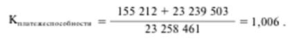 Очевидно, что для обеспечения платежеспособности предприятия необходимо, чтобы этот коэффициент был не менее 1.