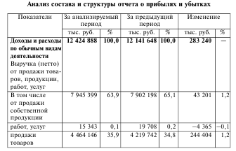 Общий анализ финансовых результатов по данным отчета о прибылях и убытках. Такой анализ предполагает изучение динамики статей доходов, расходов и финансовых результатов (горизонтальный анализ) и их соотношений (вертикальный, или структурный, анализ).