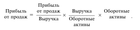 На величину прибыли от продаж (прибыли от основной деятельности) непосредственное влияние оказывает эффективность управления оборотными активами. Для анализа целесообразно воспользоваться следующей формулой: