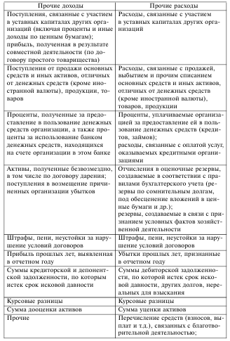 Состав прочих доходов и расходов представлен в табл.6.